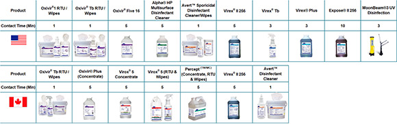 Bacterial pathogens are both Gram-negative and Gram-positive bacteria. Viral pathogens are both small, non-enveloped viruses and enveloped viruses. These organisms will be susceptible to the following Diversey disinfectants: