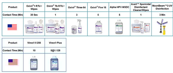 In Canada, use of a healthcare grade disinfectant with a Drug Identification Number (DIN) is required. Refer to Health Canada’s Surface Disinfectants for EVPs.